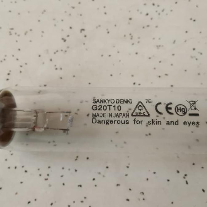 Lampu uv germicidal 20w sankyo denki g20t10 atau lampu bakteri atau lampu kuman atau germicidal lamp ultraviolet uv 20 watt merk sankyo denki jepang untuk menghapus bakteri atau kuman penyakit lampu yang efisien memancarkan sejumlah besar sinar ultraviolet 253 7nm nanometer yang memiliki efek kuman yang baik.